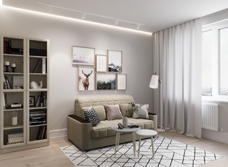 Спинка, выполненная в обивочной ткани, позволяет ставить диван в центре комнаты и зонировать пространство.