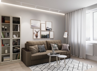 Спинка, выполненная в обивочной ткани, позволяет ставить диван в центре комнаты и зонировать пространство.