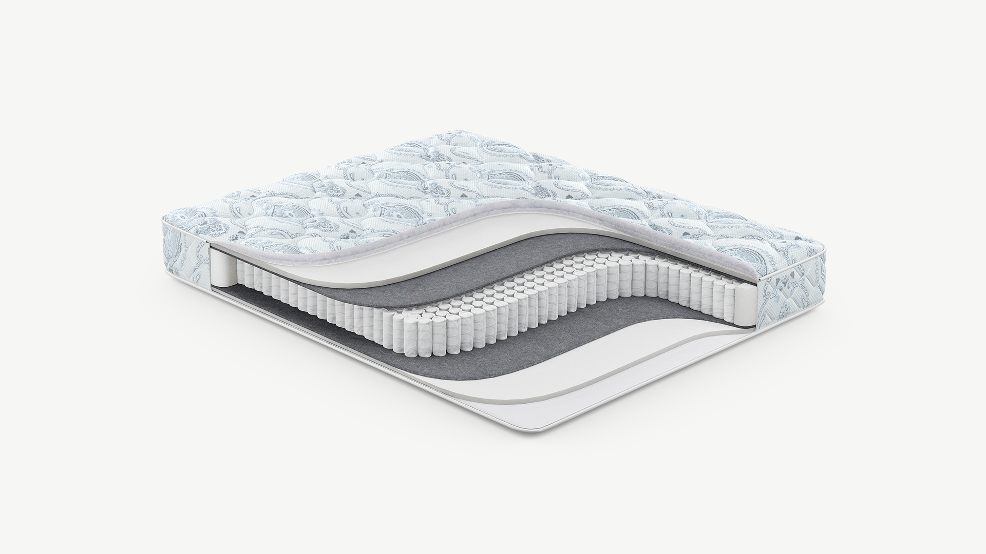 Надежно изолирует комфортные слои от соприкосновения с пружинным блоком и защищает материалы наполнения матраса от износа.