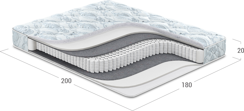 Надежно изолирует комфортные слои от соприкосновения с пружинным блоком и защищает материалы наполнения матраса от износа.