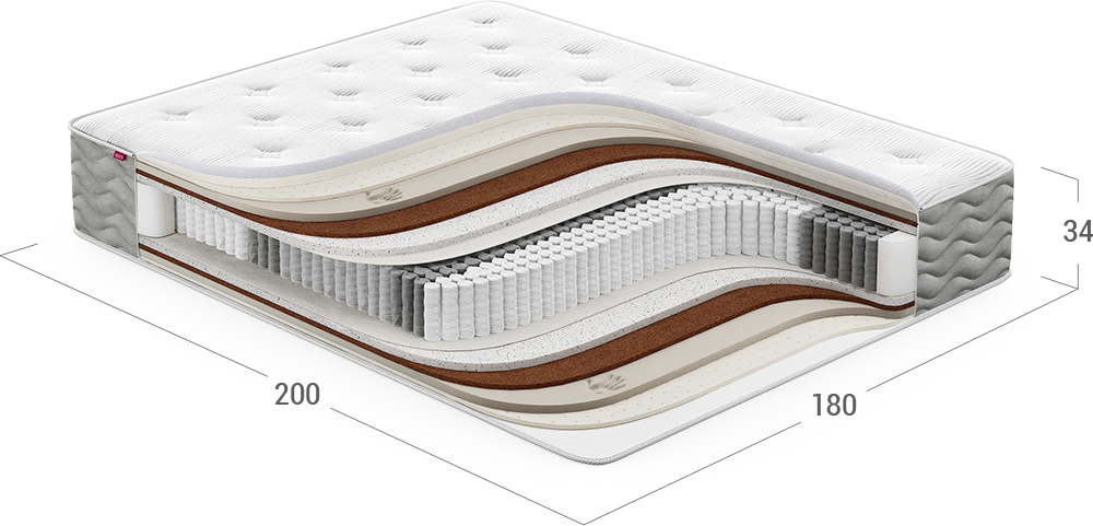 Надежно изолирует комфортные слои от соприкосновения с пружинным блоком и защищает материалы наполнения матраса от износа.