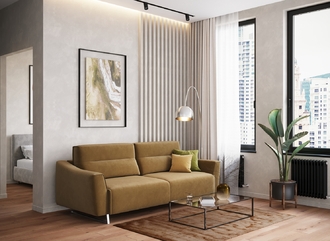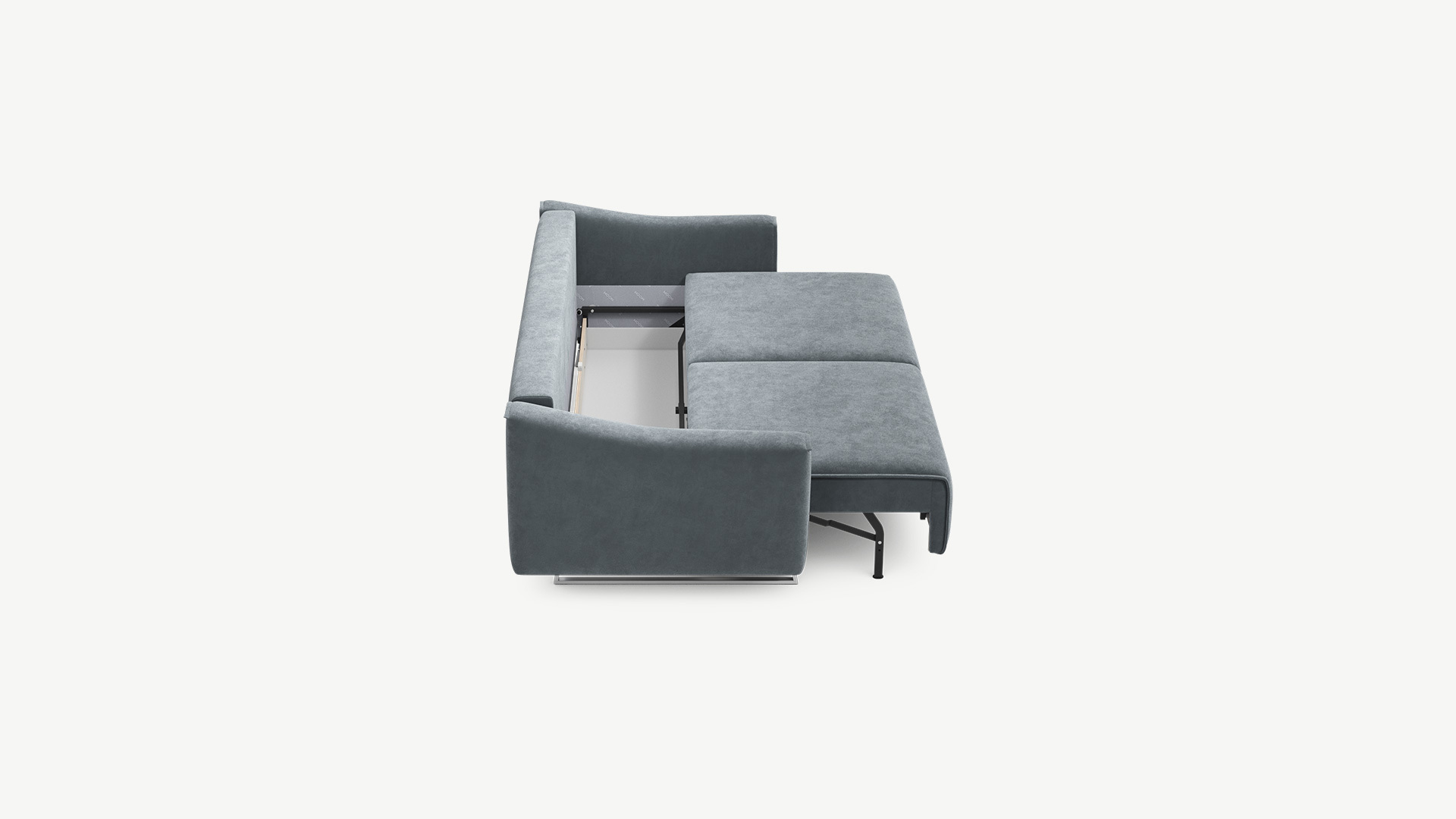 Механизм трансформации «Пантограф» подходит для ежедневного использования. Позволяет легко раскладывать и складывать диван, обеспечивая минимальный контакт дополнительных опор с напольным покрытием. Диван стоит на трапециевидных опорах, в то время как дополнительные остаются скрытыми, появляясь плавно и бесшумно в единственно нужный момент — при трансформации дивана в кровать.