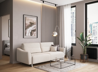 Благодаря высоким трапециевидным опорам под диваном проходит робот-пылесос и легко проводится влажная уборка, что поможет обеспечить чистоту и порядок в доме.