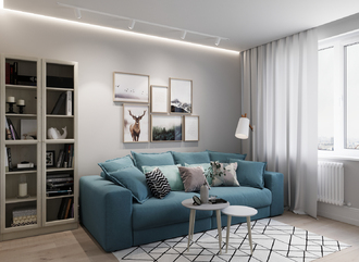 Спинка, выполненная в обивочной ткани, позволяет ставить диван в центре комнаты и зонировать пространство.