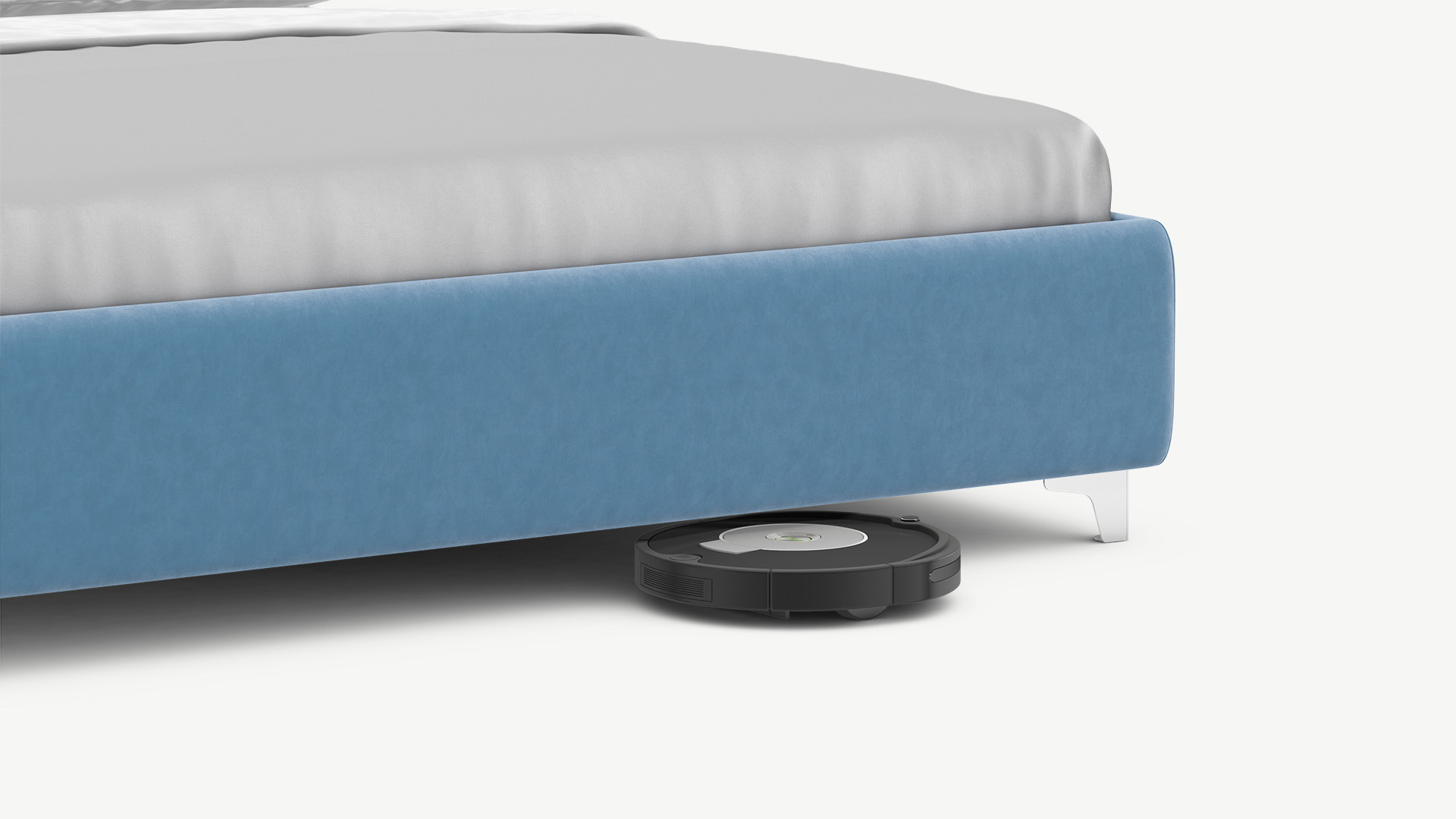 Высокие металлические опоры создают над полом достаточный просвет для движения робота-пылесоса, что помогает поддерживать чистоту и порядок в доме.