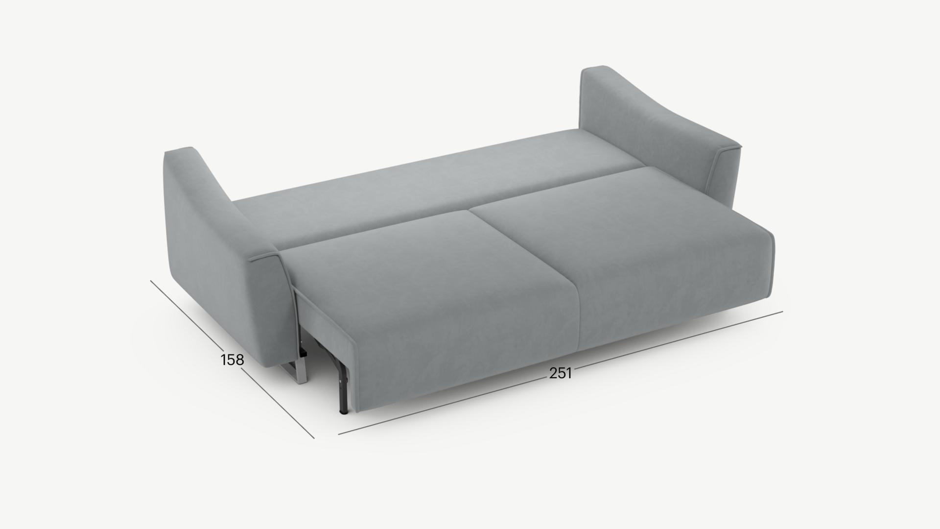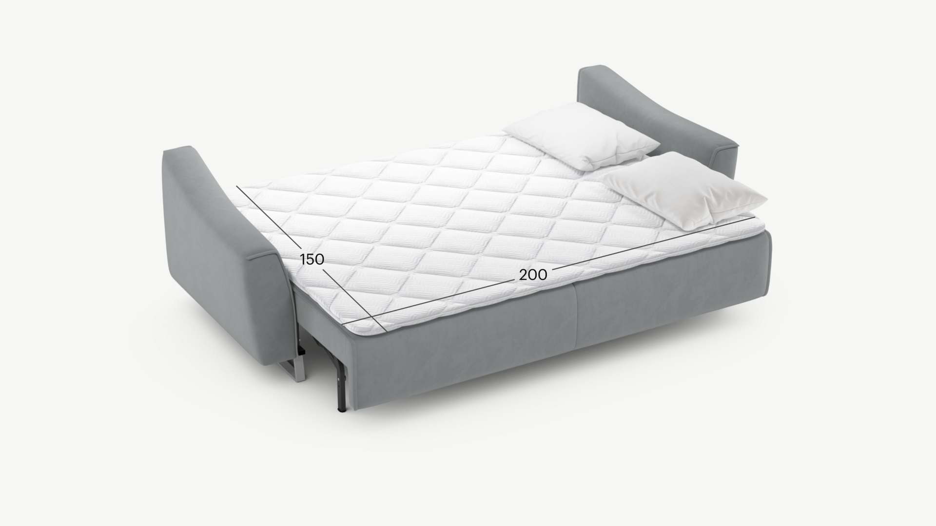 Механизм трансформации «Пантограф» подходит для ежедневного использования. Позволяет легко раскладывать и складывать диван, обеспечивая минимальный контакт дополнительных опор с напольным покрытием. Диван стоит на трапециевидных опорах, в то время как дополнительные остаются скрытыми, появляясь плавно и бесшумно в единственно нужный момент — при трансформации дивана в кровать.