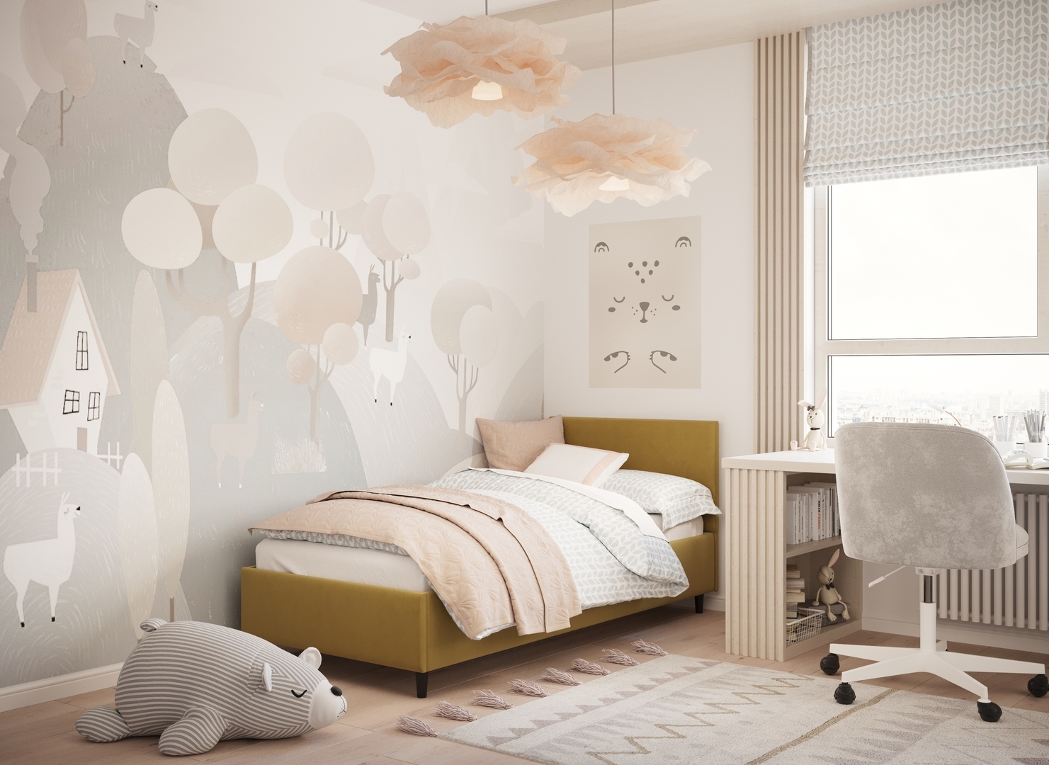 Создать гармоничный интерьер и завершить образ спальни помогут дополнительные аксессуары, например: тумбы, банкетки, подушки.
