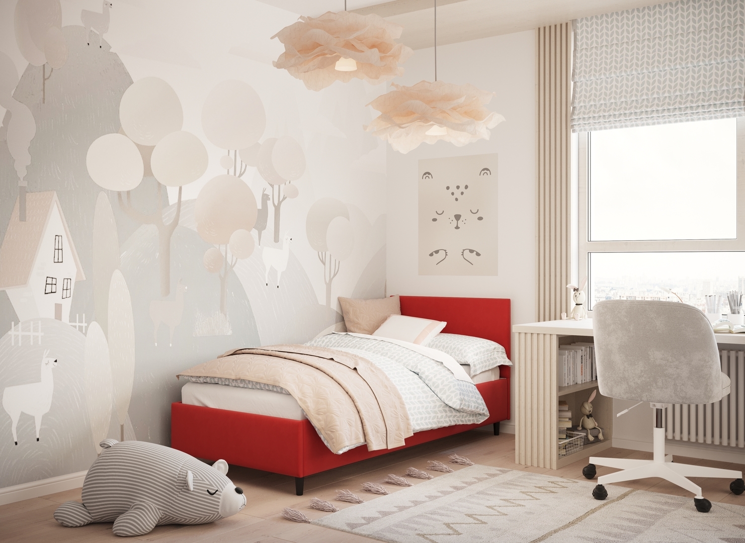 Создать гармоничный интерьер и завершить образ спальни помогут дополнительные аксессуары, например: тумбы, банкетки, подушки.