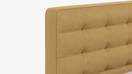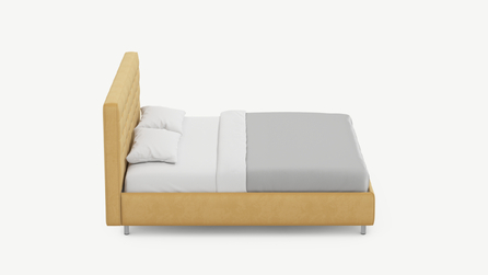 Оформите образ кровати, выбирая обивочный материал, который подчеркнет звучание Вашей спальни и отразит Ваш вкус. Обратите внимание на однотонный гладкий велюр, который усиливает объемную фактуру стежки.
