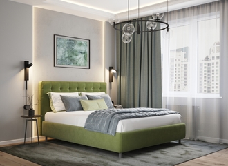 Оформите образ кровати, выбирая обивочный материал, который подчеркнет звучание Вашей спальни и отразит Ваш вкус. Обратите внимание на однотонный гладкий велюр, который усиливает объемную фактуру стежки.