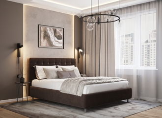 Оформите образ кровати, выбирая обивочный материал, который подчеркнет звучание Вашей спальни и отразит Ваш вкус. Обратите внимание на однотонный гладкий велюр, который усиливает объемную фактуру стежки.