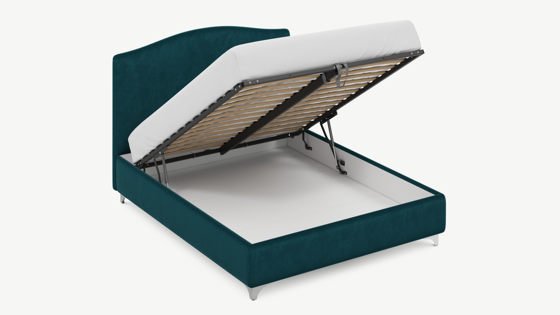 - Скрытая под основанием вместительная емкость без внутренних перегородок позволяет использовать всю площадь подкроватного пространства для хранения вещей.
