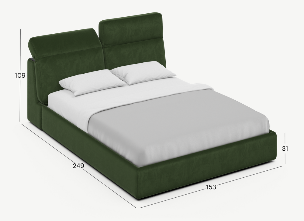 Недавно приобрели с мужем двуспальную кровать MOON 1107, и посей день очень довольны и не сожалеем о выбранной покупке. У нас она идеально вписывается в интерьер комнаты, имеет удобный растровый механизм для регулировки положения изголовья. В самой спинке кровати есть две вместительные емкости, удобно хранить, мы например, подушки туда убираем и покрывало, которые заказали тут же, очень красиво смотрится. Комфортно себя на ней чувствуешь, тело просто отдыхает. Ткань велюр, качество на высоте. Хороший выбор, буду советовать своим близким и родным!