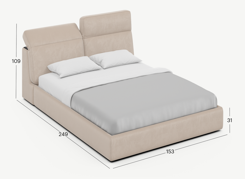 Изголовье подчеркивает эстетику MOON 1107, а также дарит дополнительный комфорт и уют спальному месту. Обратная сторона изголовья выполнена в мебельной ткани и позволяет ставить кровать в центре комнаты для зонирования пространства.