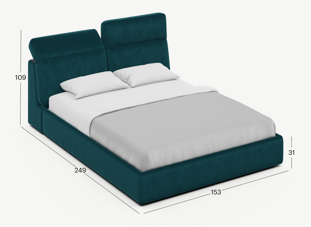 Изголовье подчеркивает эстетику MOON 1107, а также дарит дополнительный комфорт и уют спальному месту. Обратная сторона изголовья выполнена в мебельной ткани и позволяет ставить кровать в центре комнаты для зонирования пространства.