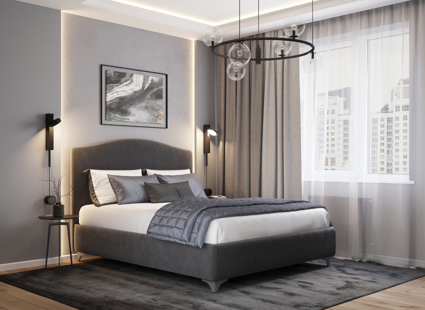 Разнообразие цветовой палитры позволит подобрать желаемый оттенок обивочного материала. Использование светлых цветов поддержит настроение стиля «Сканди». Нейтральные оттенки в цвет интерьера обыграют спальню в Современном стиле.