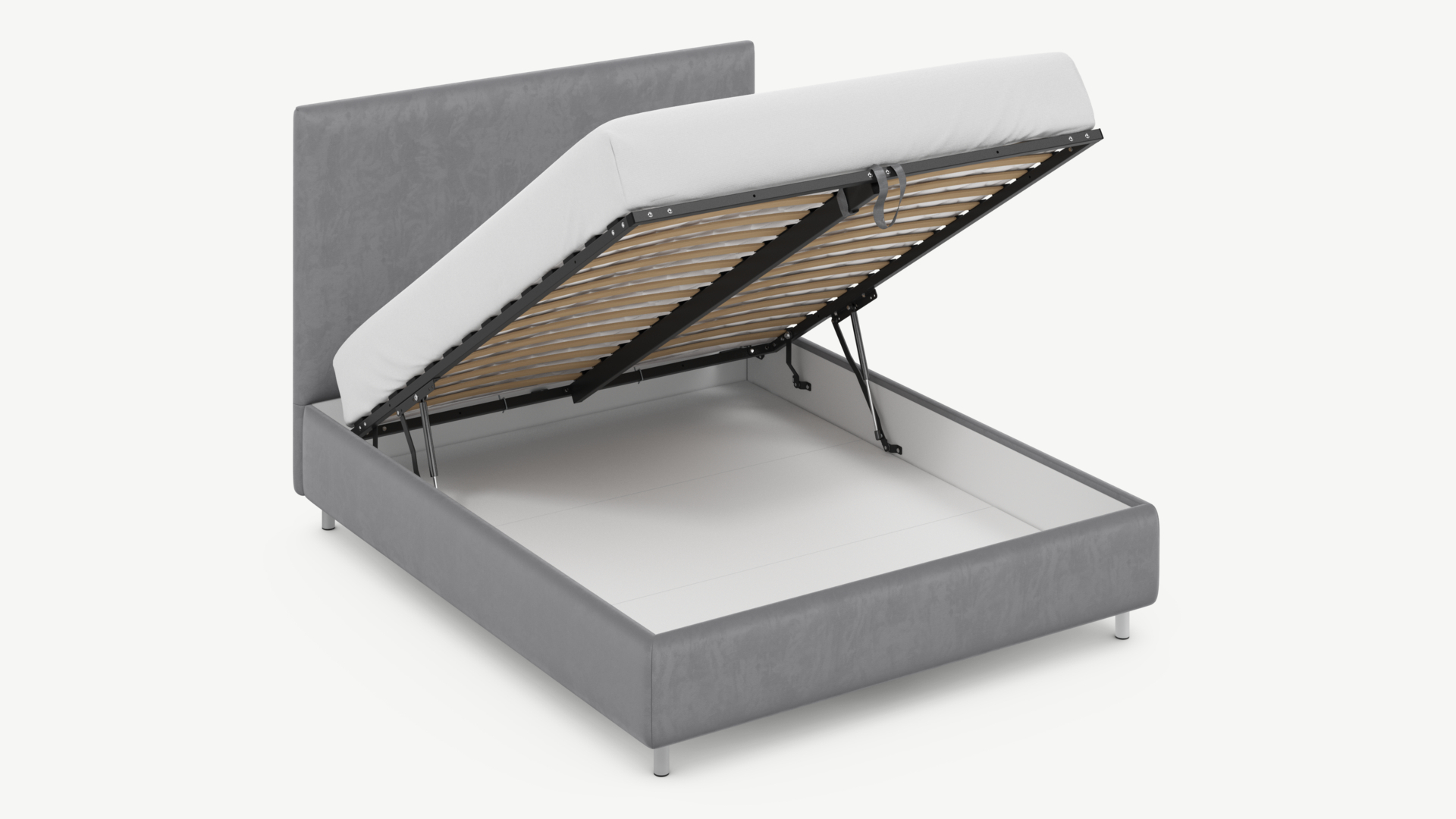 - Скрытая под основанием вместительная емкость без внутренних перегородок позволяет использовать всю площадь подкроватного пространства для хранения вещей.